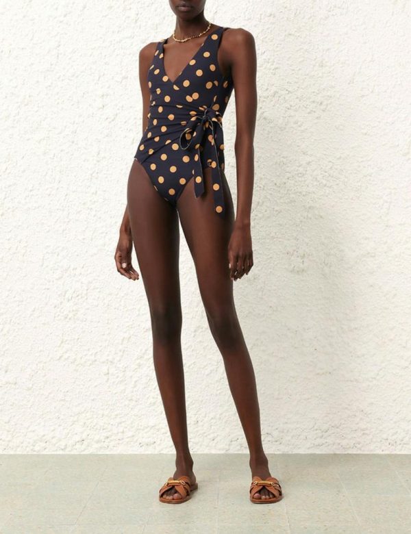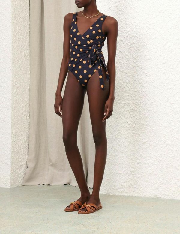 Zimmermann Separates Sculpt Wrap Tie PC Navy/beige Dot | Women One Pieces