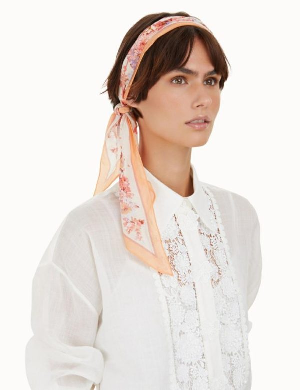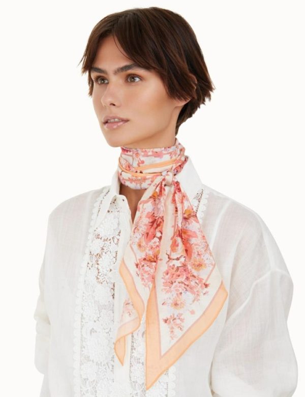 The Silk Cotton Neck Scarf in Cream Floral from our Summer Swim 2023 Collection. A printed neck scarf featuring customised placement prints and a fine rolled hem.