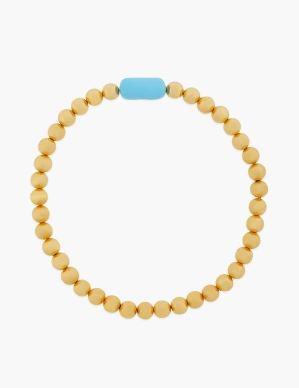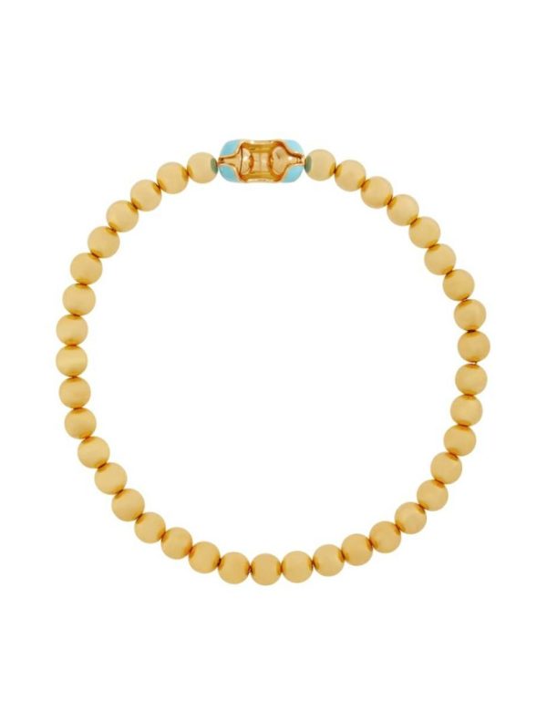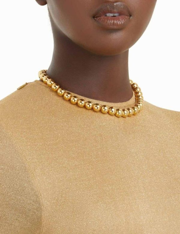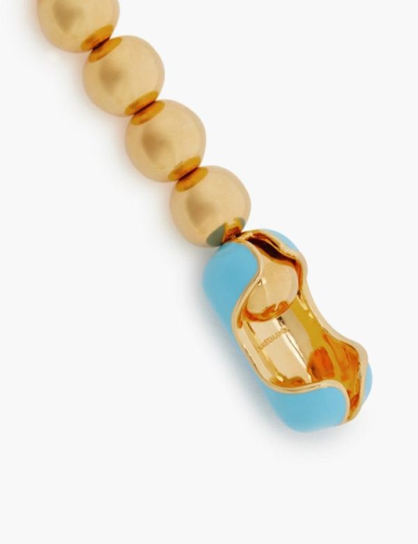 The Sphere Necklace in Gold from our Fall 2023 Collection, Luminosity. A gold plated beaded necklace featuring a contrast enamel clasp.