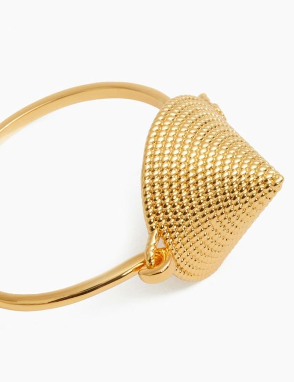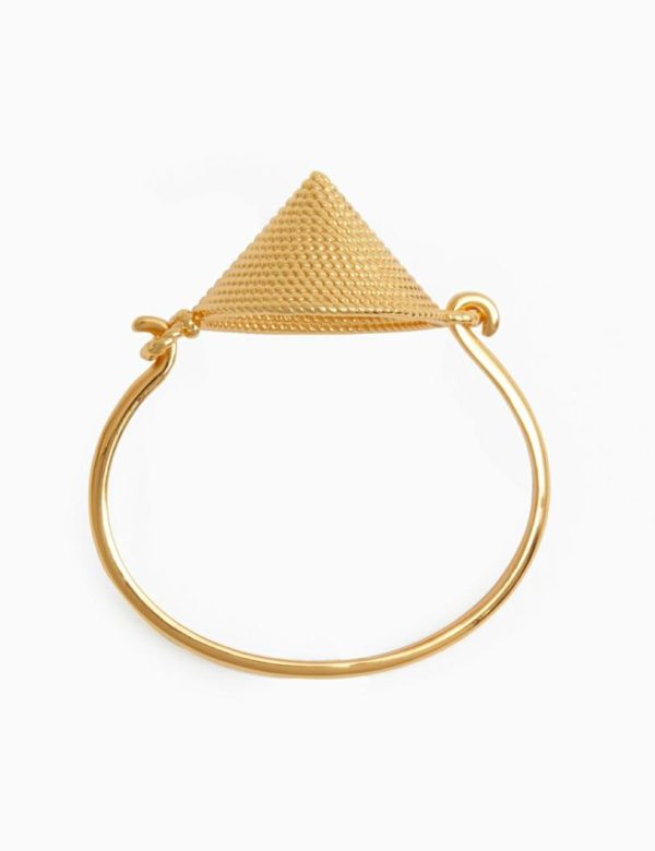 The Spiral Rope Cone Cuff in Gold from our Spring 2023 Collection, Wonderland. A gold plated cone shaped cuff with rope look detailing.