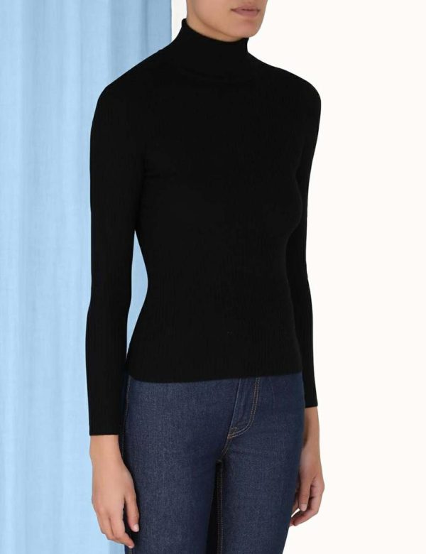 The Turtleneck Rib Top in Black from our Fall 2023 Collection, Luminosity. A long sleeve woollen top featuring a high turtle neck.