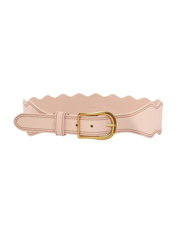 The Wave Leather Waist Belt in Desert from our Summer Swim 2023 Collection. A leather belt featuring scalloped edges with contrast topstitching throughout.
