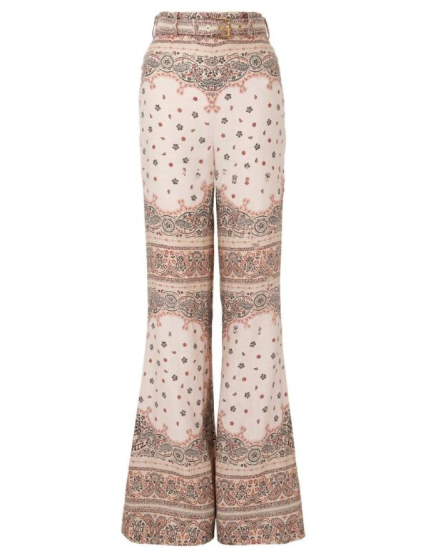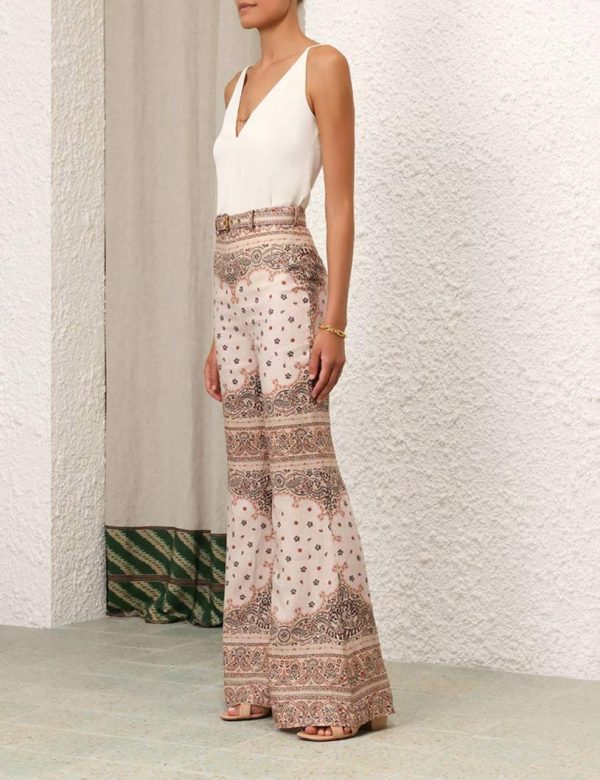 The Wide Leg Pant in Cream Bandana from our Resort 2024 Collection, Matchmaker. A linen pant featuring a high waisted, flare silhouette, finished with a self cover belt.
