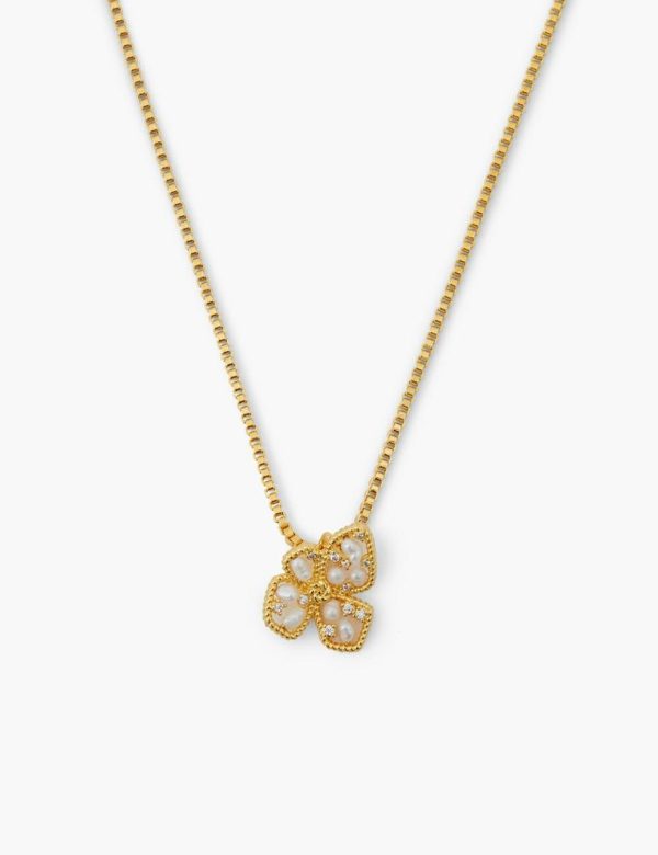 The Zimmermann Bloom Necklace in Gold/Pearl from our Resort 2024 Collection, Matchmaker. A gold plated chain necklace featuring semi precious and cubic zirconia stone pendant.