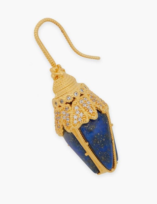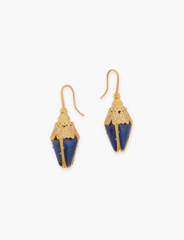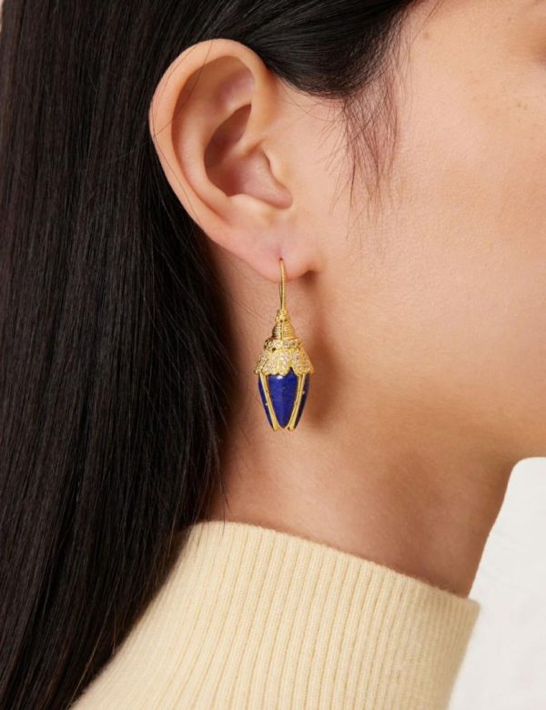The Zimmermann Bloom Large Dangles in Gold/Lapis from our Resort 2024 Collection, Matchmaker. A gold plated drop earring featuring semi precious and cubic zirconia stones throughout.