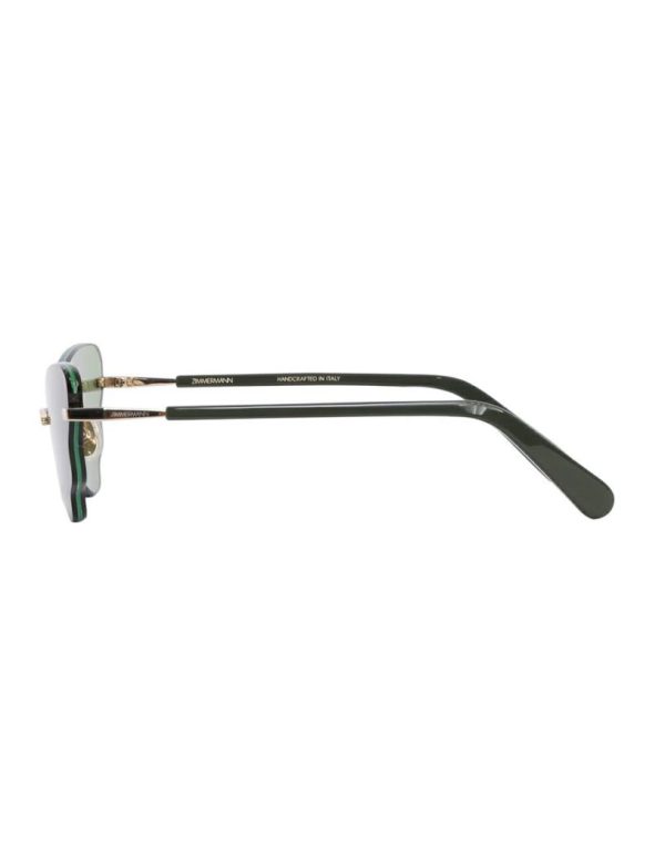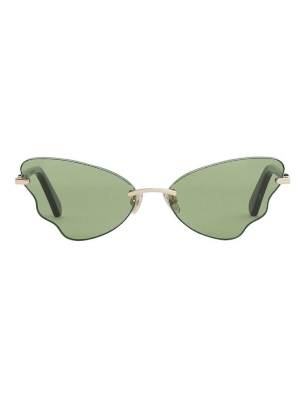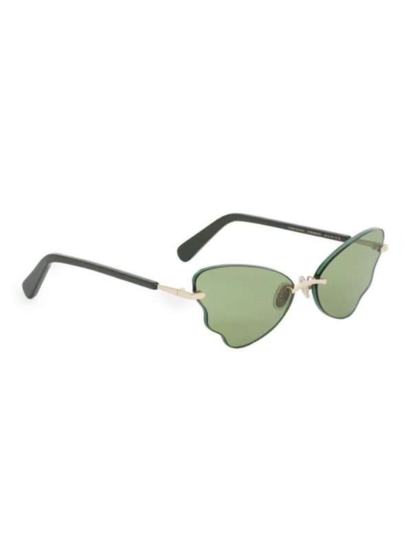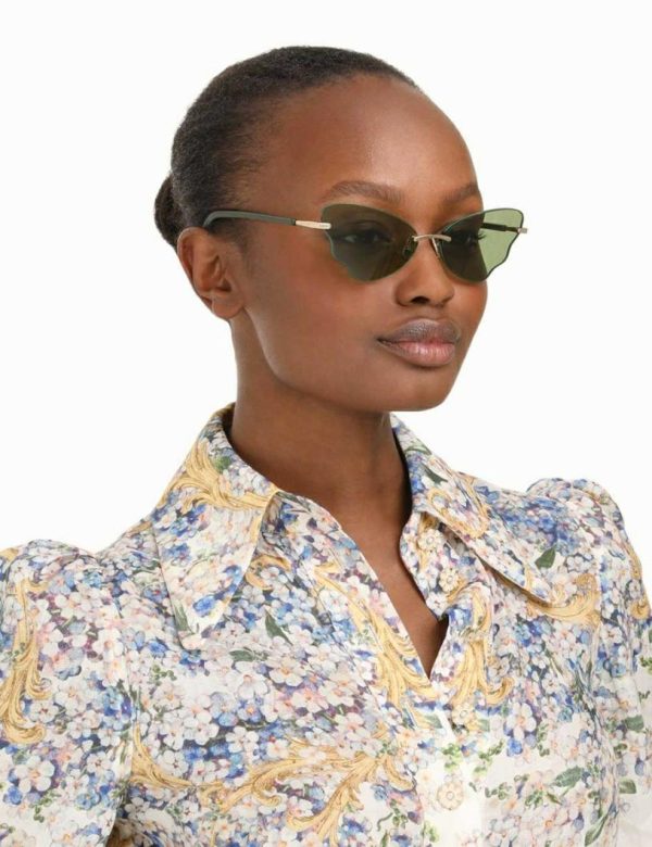 The Zimmermann Celeste Butterfly in Bottle Green from our Spring 2023 Collection, Wonderland. A rimless shell inspired silhouette with a sleek temple design and polished gold fixtures.