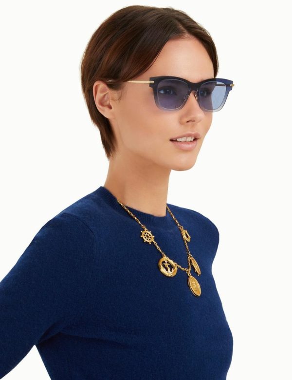 The Zimmermann Rhythmic Bold Mask in Blue from our Resort 2023 Collection, High Tide. An acetate frame featuring a sheer colour wash and solid tint lenses, finished with bevelled edges.
