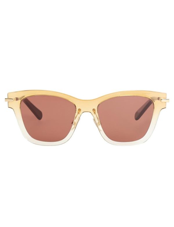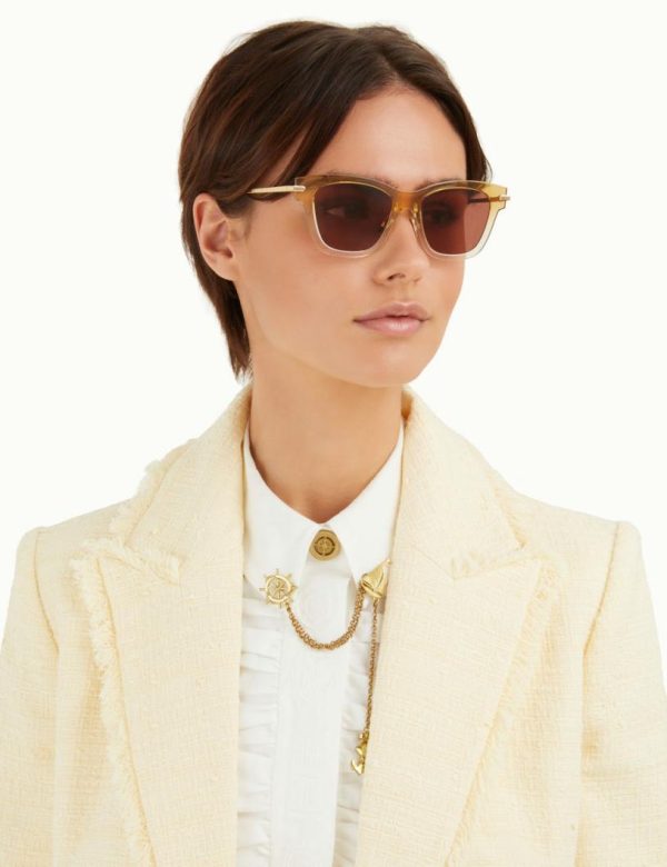 The Zimmermann Rhythmic Bold Mask in Mustard from our Resort 2023 Collection, High Tide. An acetate frame featuring a sheer colour wash and solid tint lenses, finished with bevelled edges.