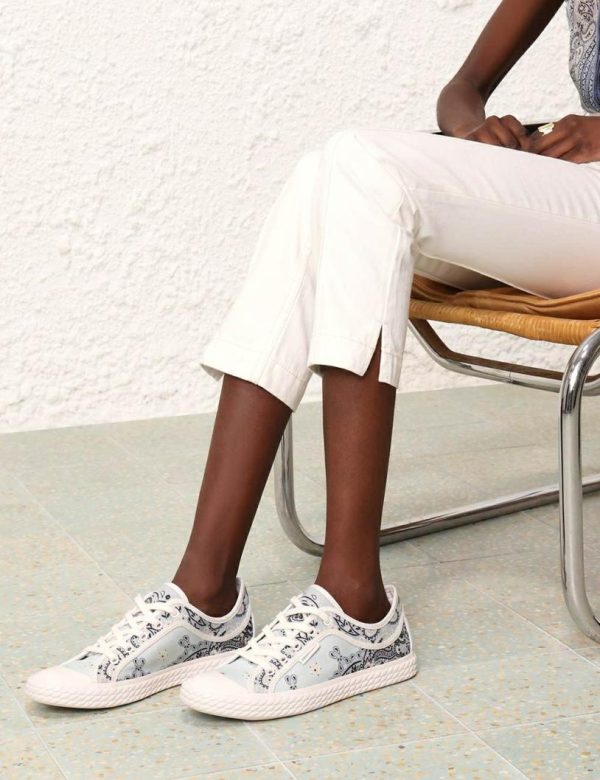 The Twist Low Top Sneaker in Blue Bandana from our Resort 2024 Collection, Matchmaker. A linen printed low top sneaker featuring a rope look sole.